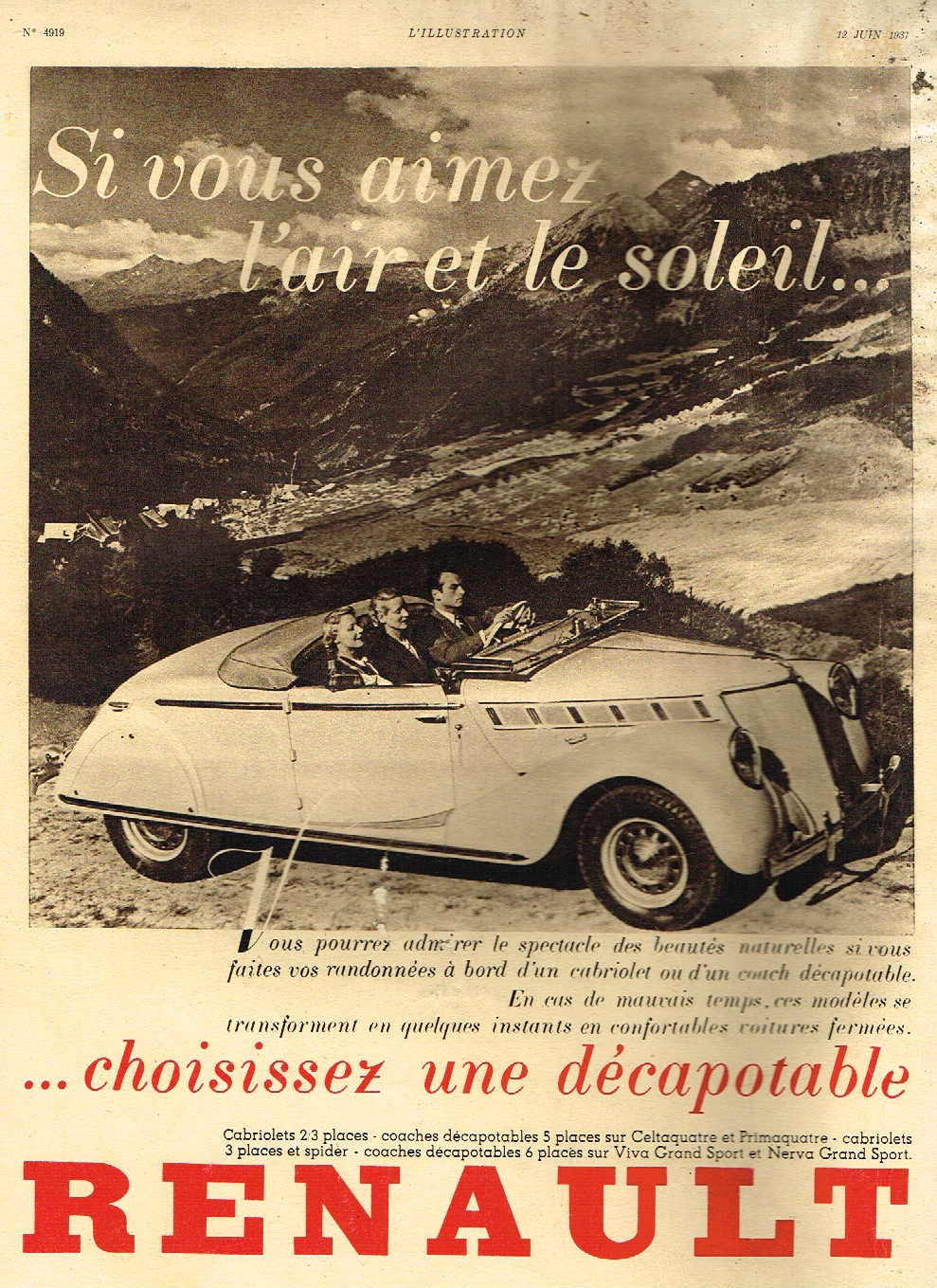 It is the first big French getaway of the summer. Thousands of people taking to the roads heading south to the Med or West to the Atlantic. I am an avid collector of old French magazine ads. Here are a few gems from my collection – the big summer getaway 1930’s style. It was in 1936 the the government of the day – The Popular Front, granted all workers a minimum 40 hour week, and for the first time ever, two weeks paid annual holiday. In the summer of 36, hundreds of thousands of French workers did something they had never done before – they went on holiday.