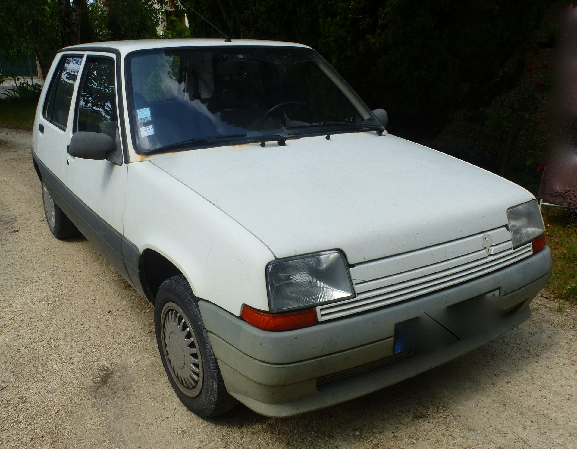Behind the Citroen is a Renault 5 – a mid 1980’s white Renault 5 TD – a wreck, a rustbucket, a heap of crap on wheels that only looks fit for the crusher. I am assured that the vehicle is roadworthy. I am shown all the paperwork to prove the fact.
