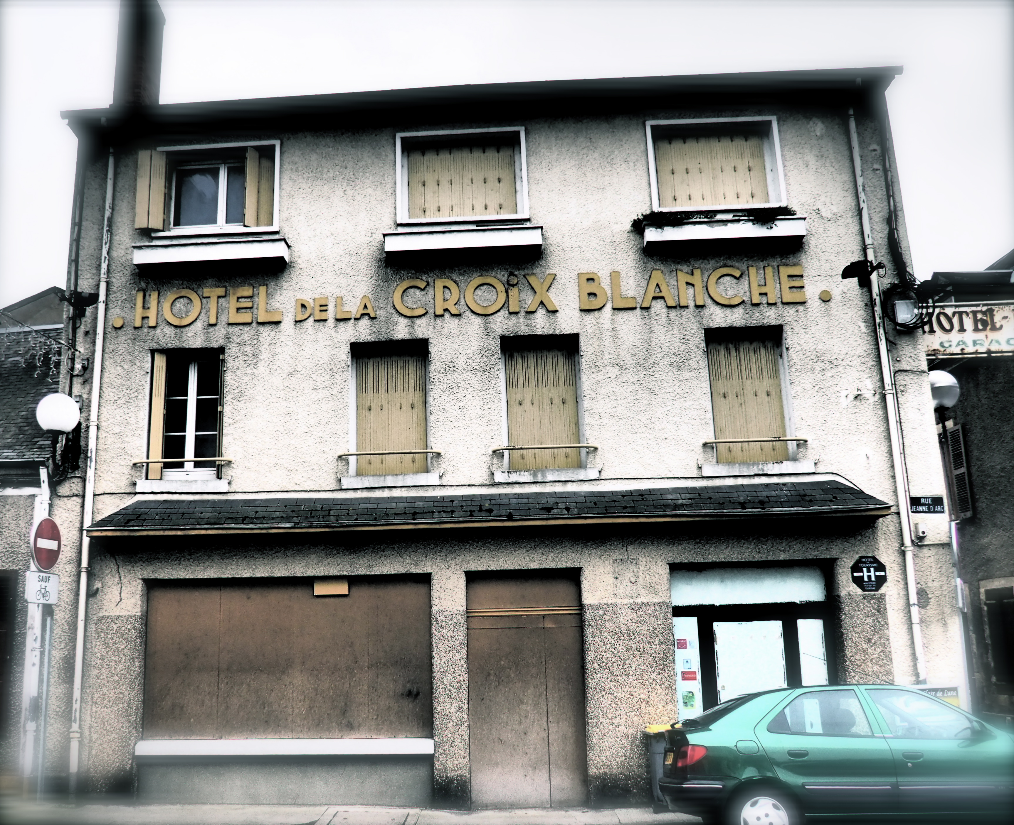 The Croix Blanche in Mehun sur Yévre. The hôtel is pretty much in the same state as the rest of the town.