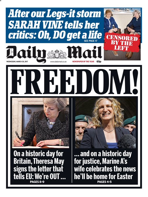 FREEDOM! screams a huge banner headline from the front page of the Daily Mail.