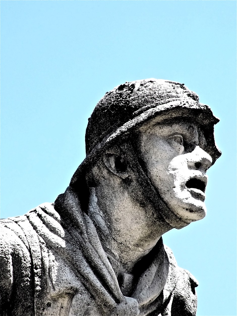 It’s one of those airless, hot summer Sundays. The world is on holiday, deepest France is in full summer slumber – a perfect time for a country drive, on uncluttered winding roads – across the fields and through the forests. On a photo safari down to the village of Souesmes, sight of a major battle in 1944 between local resistance fighters and the Wehrmacht heading north to reinforce German forces fighting in Normandy. This is the centre of France, where, in July and August 1944 over a quarter of a million German troops heading north to south and west to east, were stopped in their tracks by the local Resistance. There are hundreds of small roadside monuments commemorating such events and occasionally village war memorials inscribed with the names of the dead from World war Two and World War One – in many villages nowadays the names of the dead from both wars are greater than the number of current inhabitants. Here are some photos of an “unknown soldier” on a village war memorial. His face shows the suffering and scars of war and his state of decay shows the indifference of modern France where once the link between the nation’s army and its citizens was a true historical and moral bond. here is the forgotten soldier.