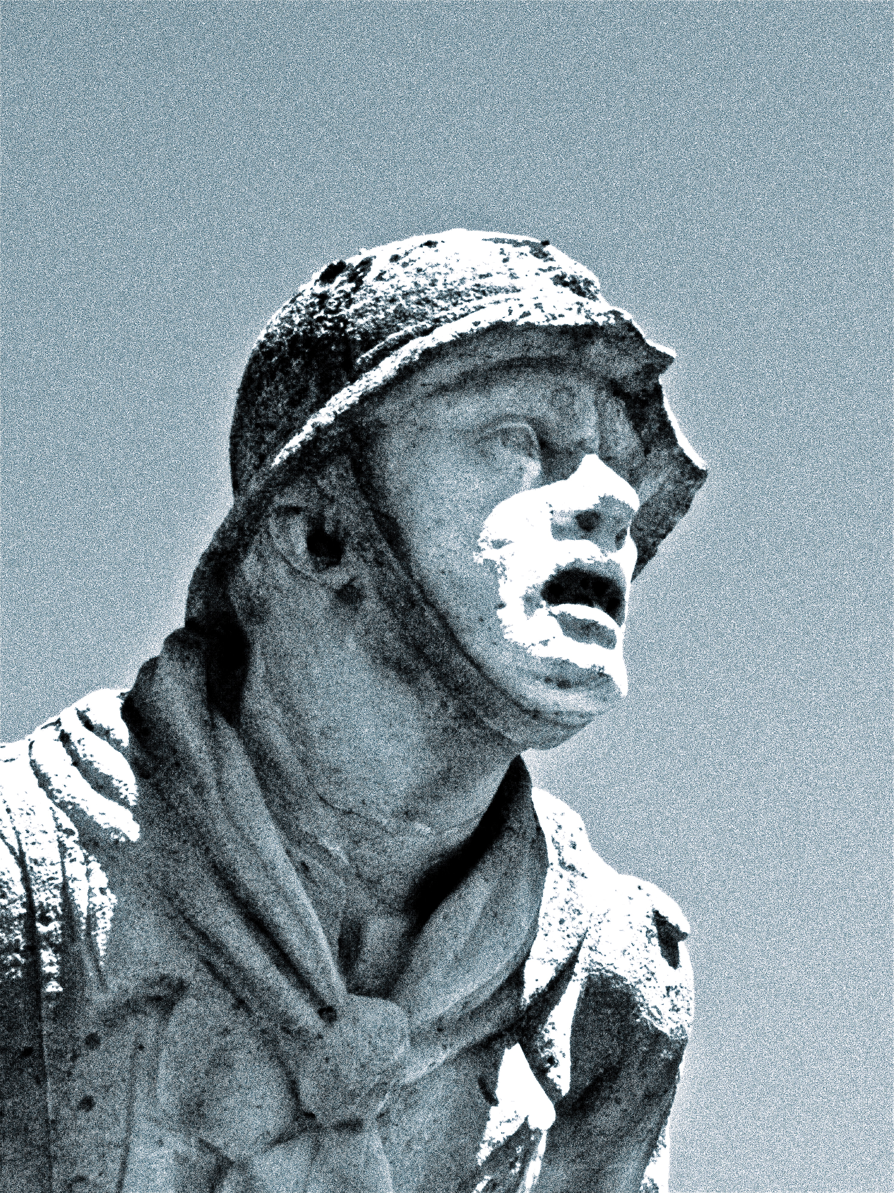 It’s one of those airless, hot summer Sundays. The world is on holiday, deepest France is in full summer slumber – a perfect time for a country drive, on uncluttered winding roads – across the fields and through the forests. On a photo safari down to the village of Souesmes, sight of a major battle in 1944 between local resistance fighters and the Wehrmacht heading north to reinforce German forces fighting in Normandy. This is the centre of France, where, in July and August 1944 over a quarter of a million German troops heading north to south and west to east, were stopped in their tracks by the local Resistance. There are hundreds of small roadside monuments commemorating such events and occasionally village war memorials inscribed with the names of the dead from World war Two and World War One – in many villages nowadays the names of the dead from both wars are greater than the number of current inhabitants. Here are some photos of an “unknown soldier” on a village war memorial. His face shows the suffering and scars of war and his state of decay shows the indifference of modern France where once the link between the nation’s army and its citizens was a true historical and moral bond. here is the forgotten soldier.