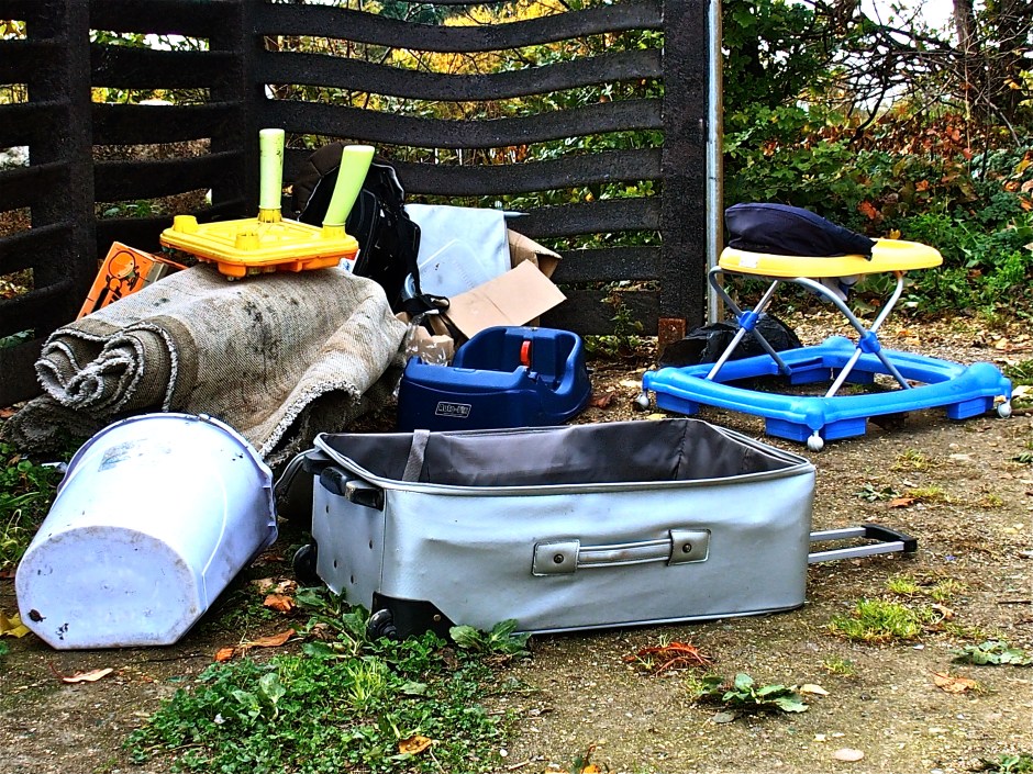 The last belongings of refugees forced to flee? The last remounts of their lives, grabbed in blind panic in the middle of the night and now abandoned by the wayside, too heavy to carry? What do you save when you have to save yourself? Or just someone who couldn’t be bothered to take his trash to the dumpster and so dumped it on the sidewalk?