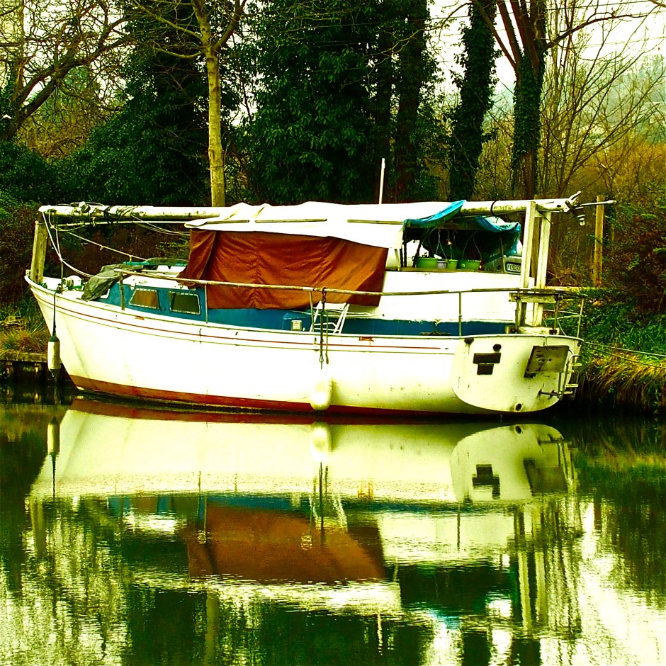 Under ominous grey skies, in a freezing wind, on a deserted river bank towards the close of day and the close of the year – There is something tantilisingly romantic about about beat up old boats, Neglected and decaying in their moorings on a winter’s day, waiting for summer and an improbable even impossible last voyage – just one more time for love.