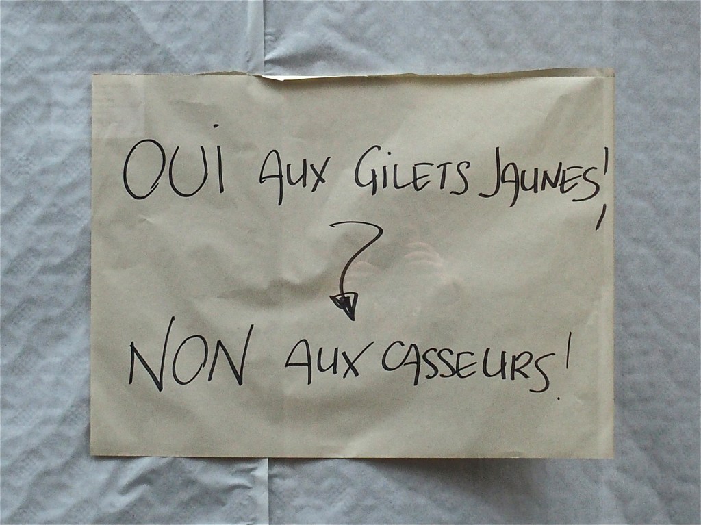 We begin to talk about the yellow vests. I think I understand. I went down to the demo before it started and talked with a few. The yellow vests, a group of dipsarate and desperate people who are tired of grinding along the bottom. They want to start living and not simply existing.