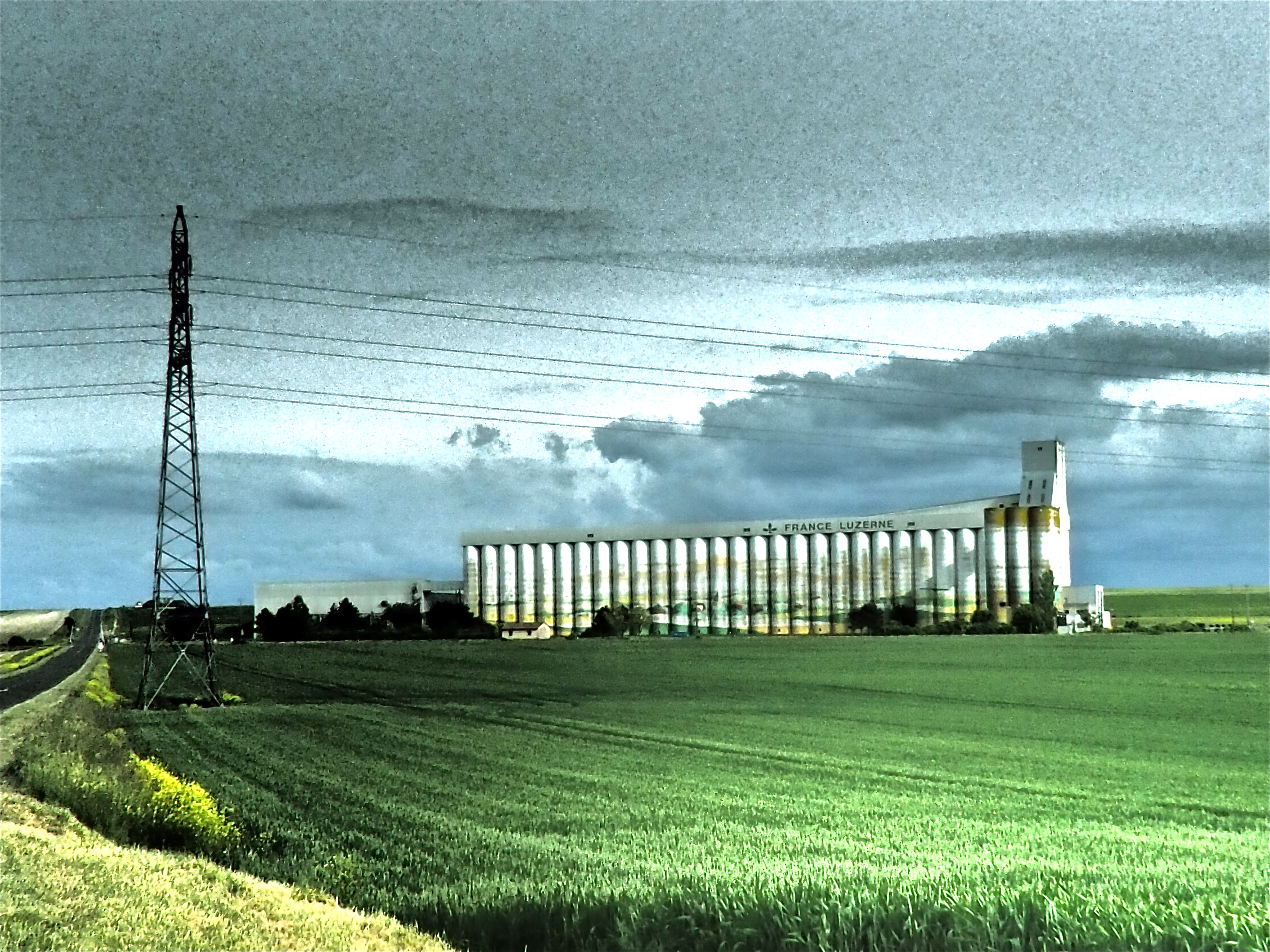 A contemporary rural landscape with some unique “agricultural architecture”. Near reims, we are in that part of France that saw some of the bloodiest fighting in World War One. Just to the let of the pylon, a WW1 cemetry where 250 souls RIP.