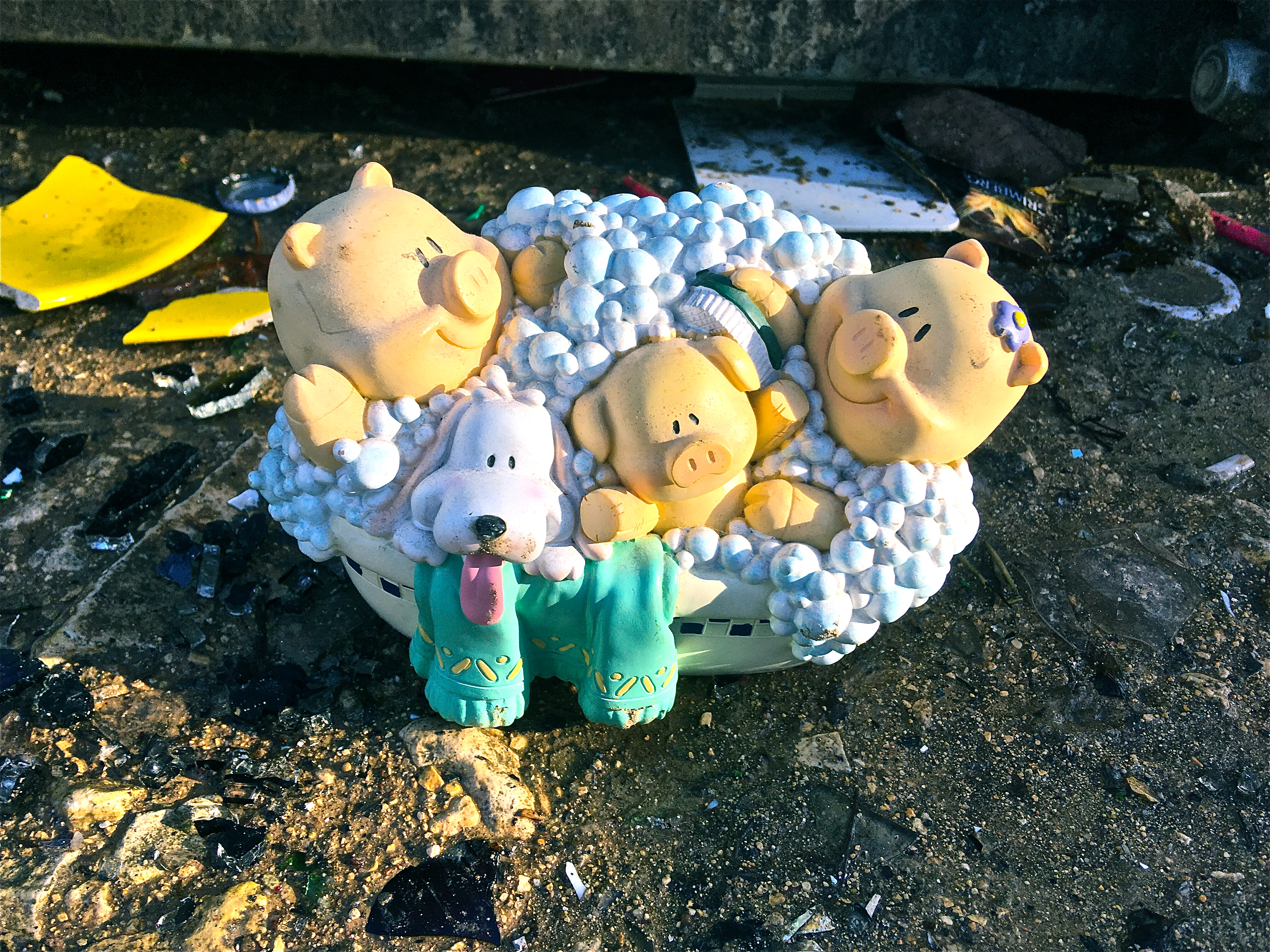 So here are a couple of “stranger” items thrown on the ground at the recycling centre, pigs in a bath and a lonely rabbit, raising questions about why do people throw away what they do and where they do?