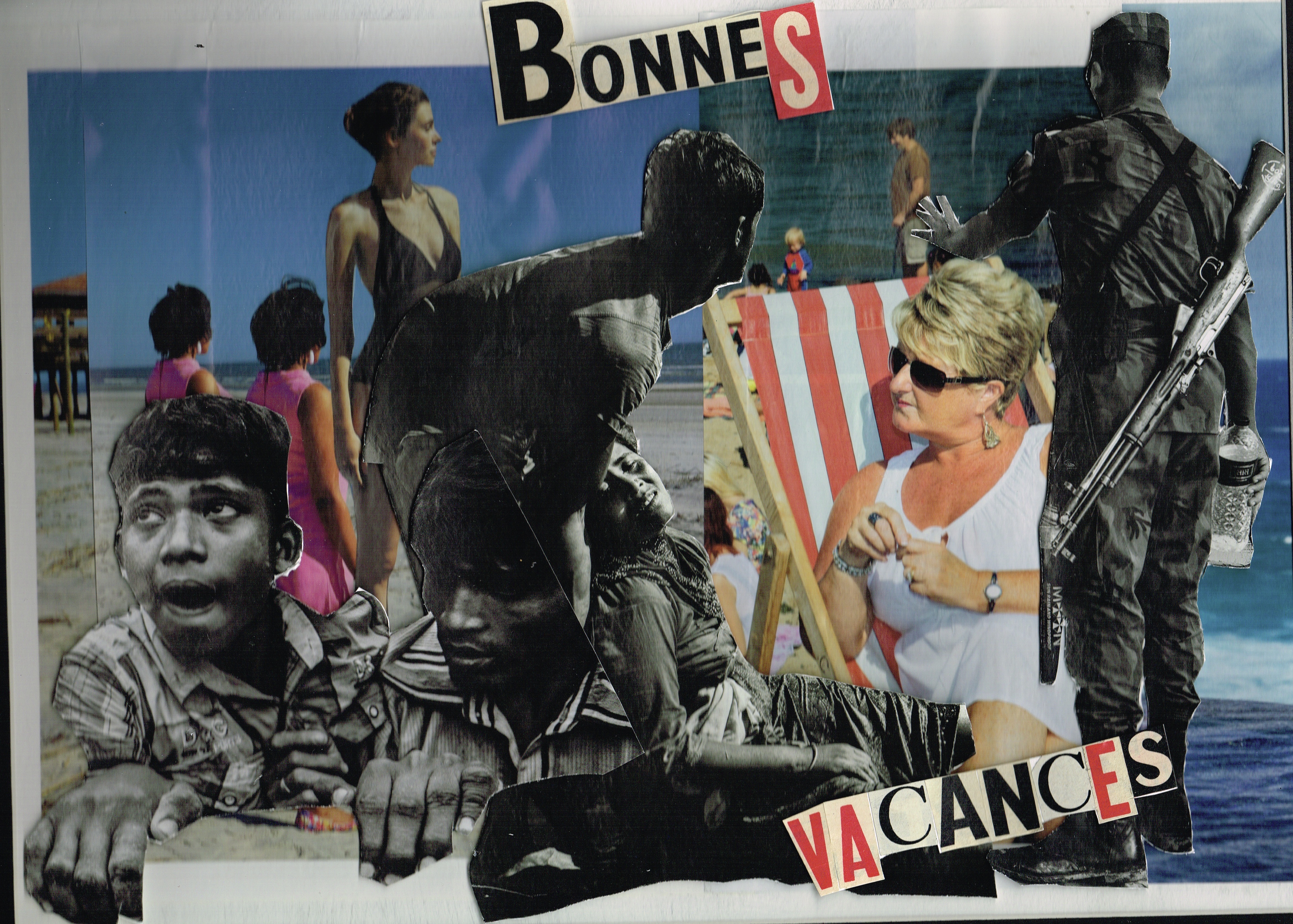 Old photo mags, inspired by the migrant crisis. All those fleeing war and poverty who wash up on our summer holiday beaches.
