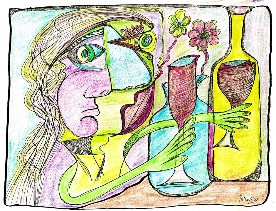 I want to doodle/draw something. I get on the Internet and google “draw like Picasso” – great doodles for someone who can’t draw a real face. Just draw a back to front squashy face. Ok folks. Sitting at home, no summer getaway recovering from a heart attack, here are some summer doodles.