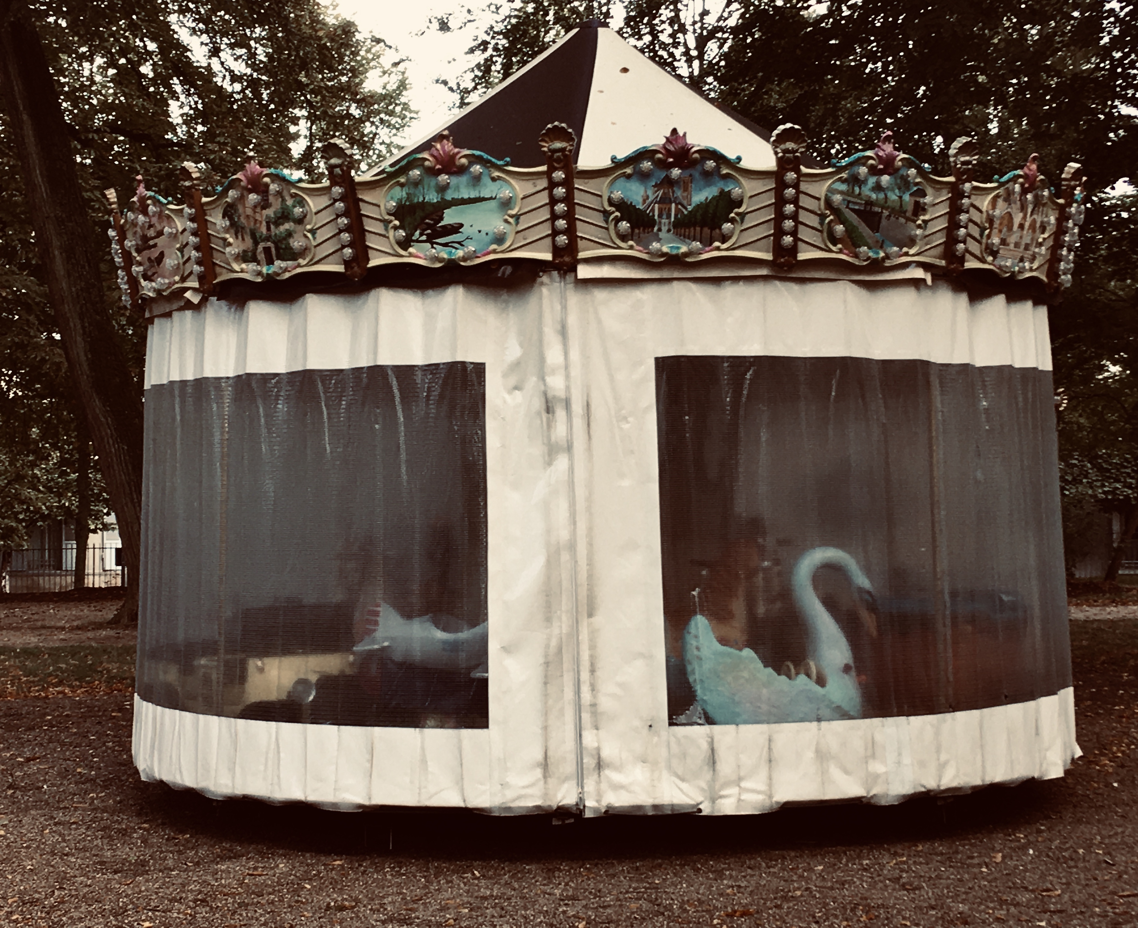 When summer fades and we drift into mists and mellow fruitfulness. The summer daze and summer haze, of long cool drinks, sipping sweet at the café in the park as kids run and shout, playing on the slides and swings, and before we stroll home, I jingle up change in my pocket, scraping together a few coins and pay my girl a ride on the carousel. And summer has faded into fall and been blown away in October storms, the carousel is quiet.