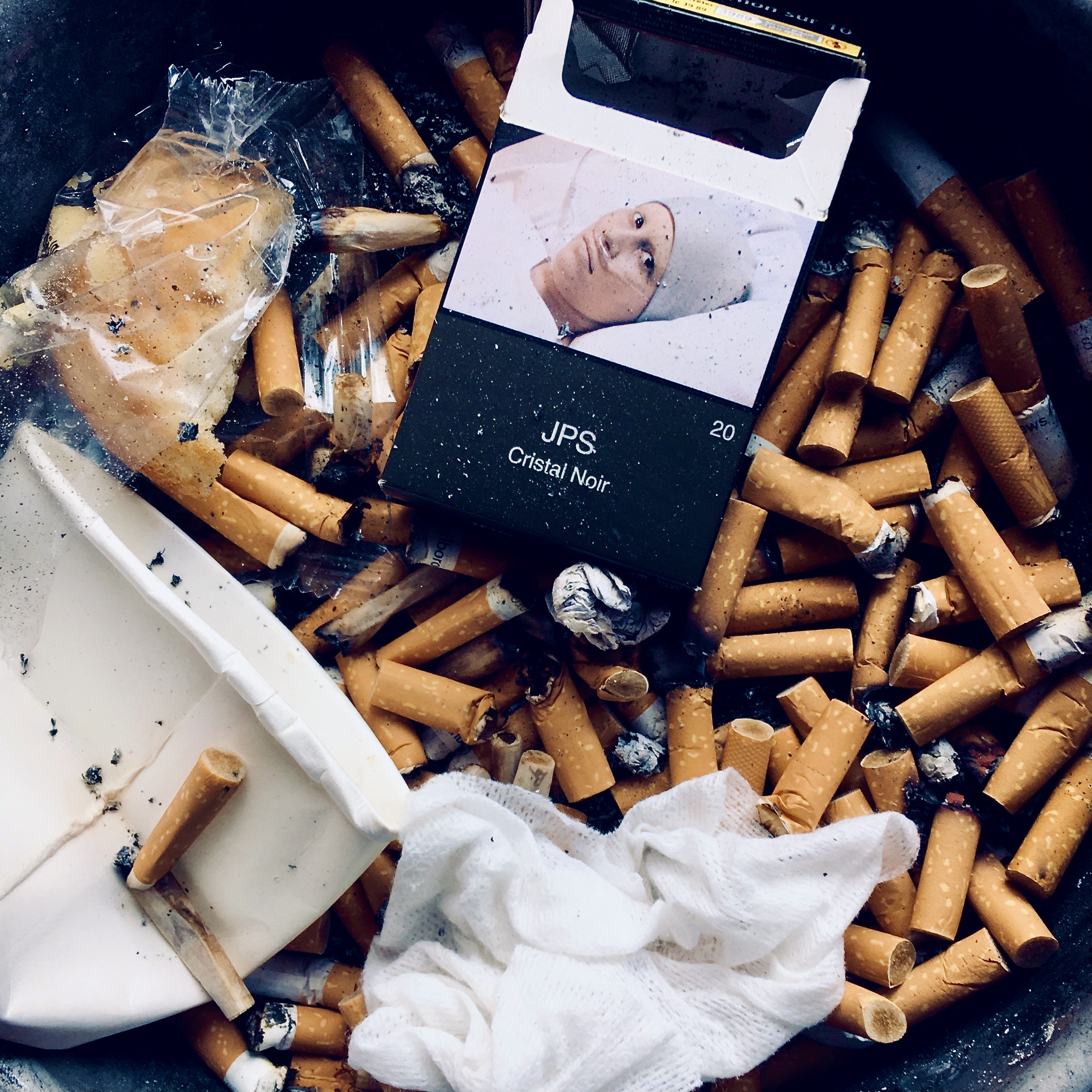The lady looks kind of unhappy amongst these cigarette butts. Yes bars and cafes and restaurants are still closed, but some bars are selling “takeaway” coffee. Once you collected your coffee, you stand round the giant communal ashtray with your friends and have a smoke break. Even if I have given up smoking, there is something very visually alluring about all things cigarettes related. The lady on the packet should have a more agonised look if the photos is to be effective. She just looks mildly annoyed. Kind of Mona Lisa.