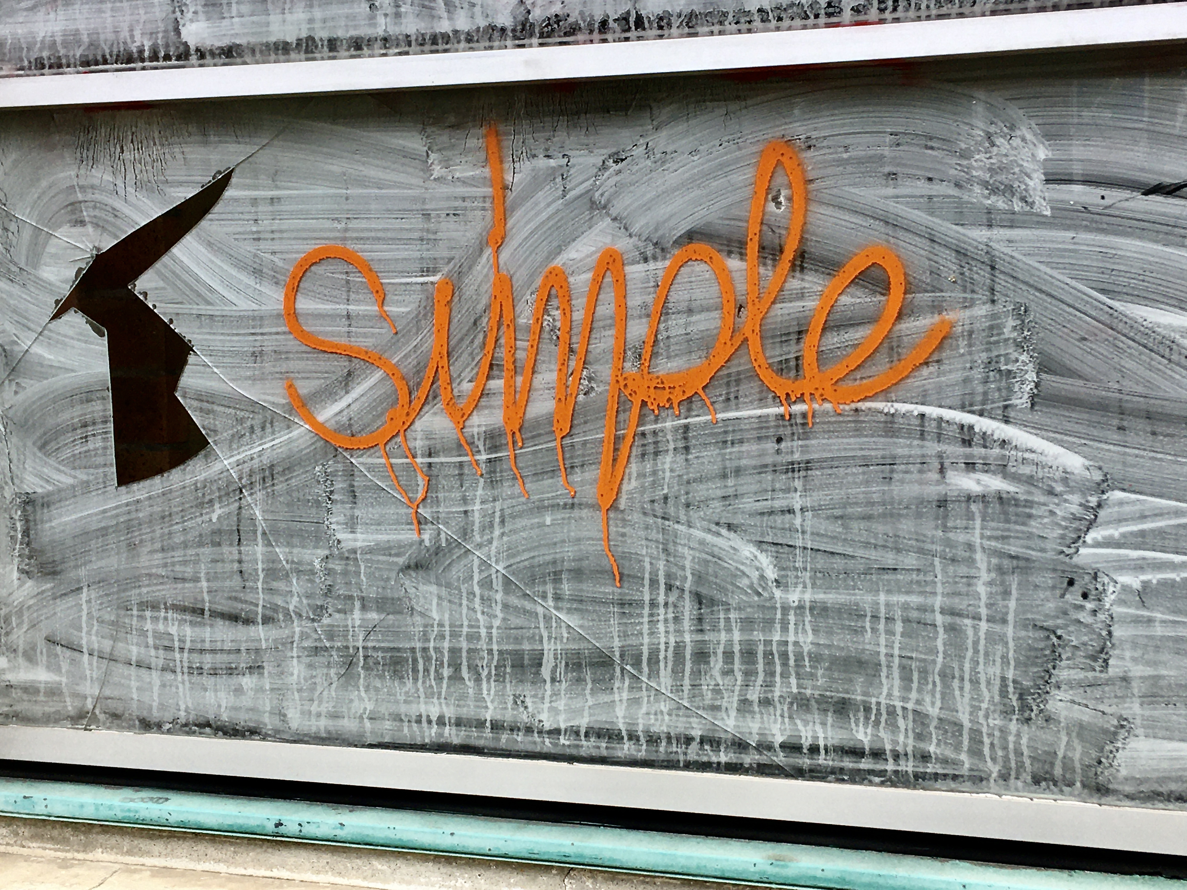 Here’s some new graffiti on this recently smashed window. Almost street art.