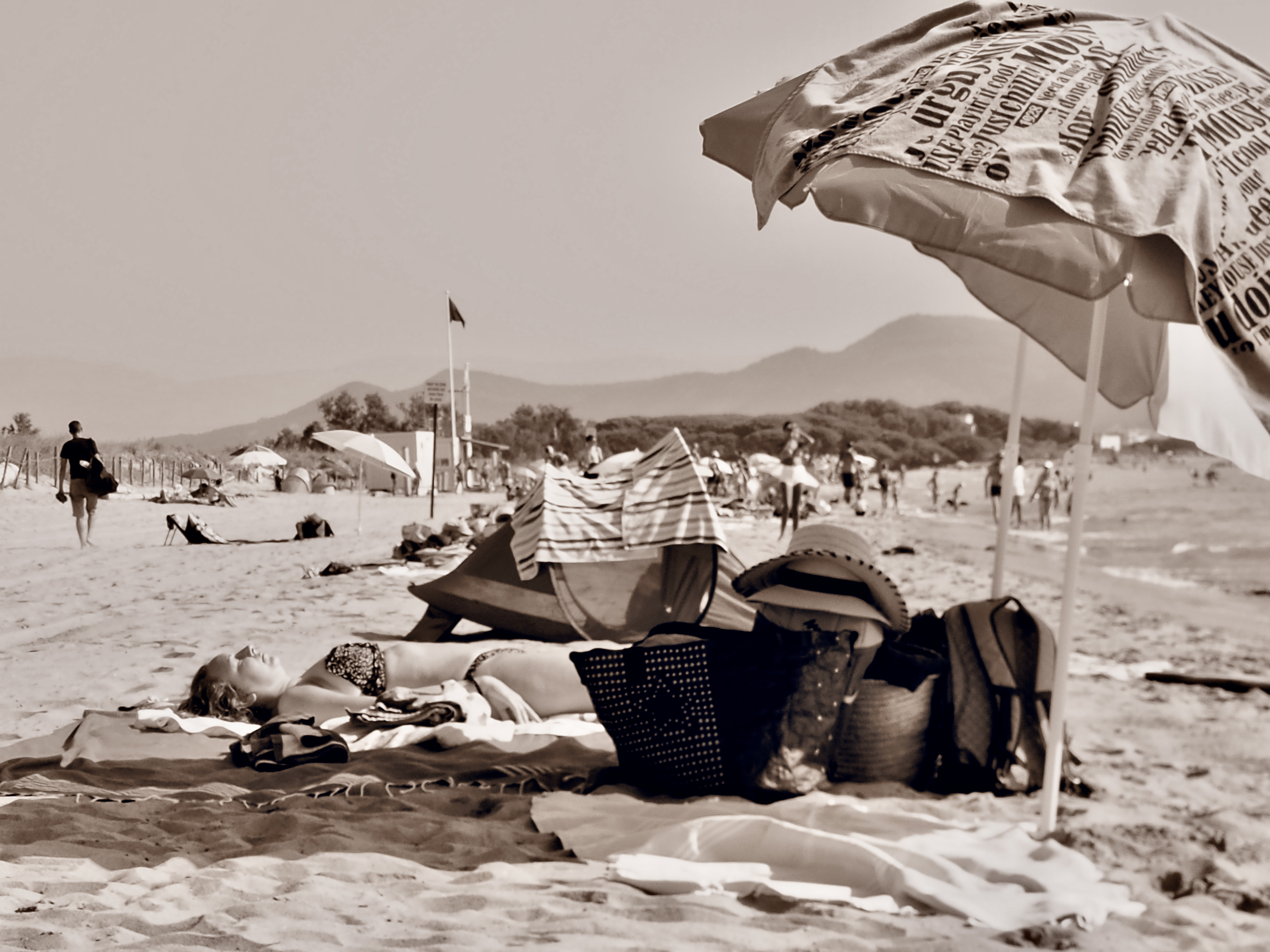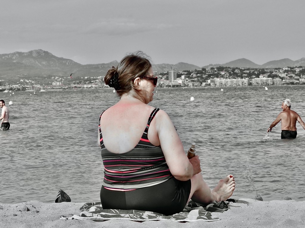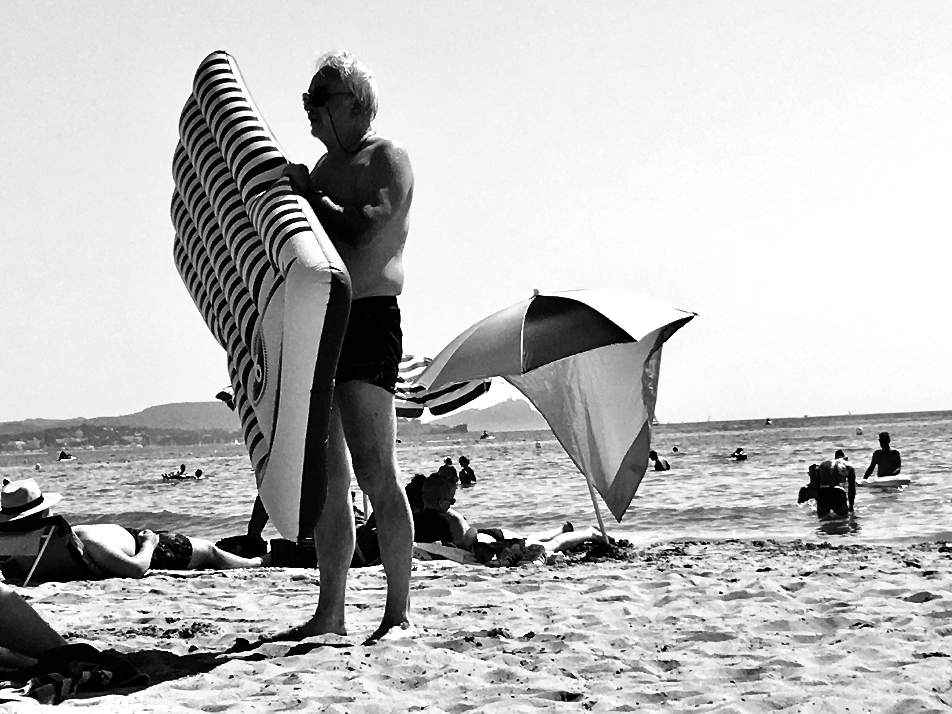 “Life’s a beach and then you fry” or, “To beach or not to beach?” Here are a few clichés from the the beach. We are between St Raphael and Cannes on the French Riviera. All humanity is here, si I guess life is a beach.