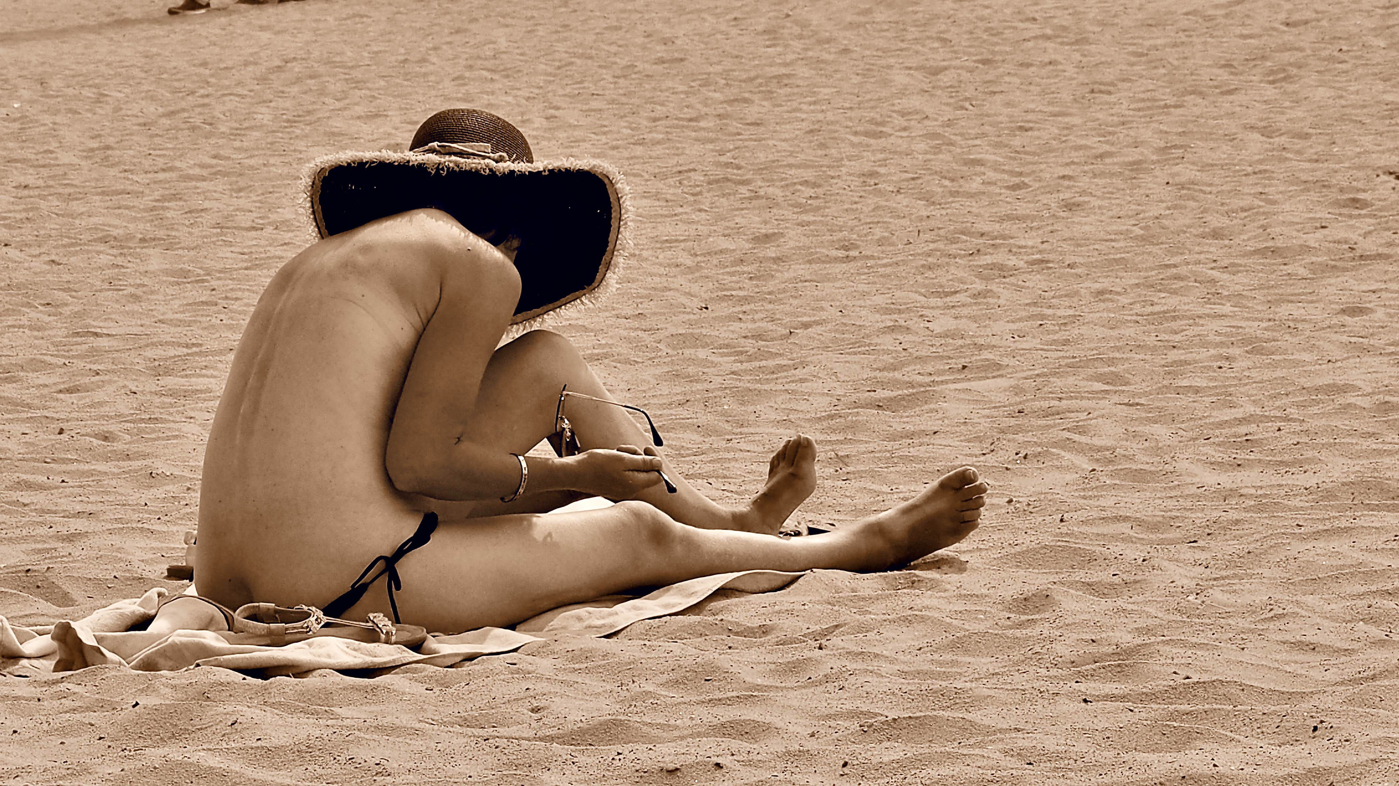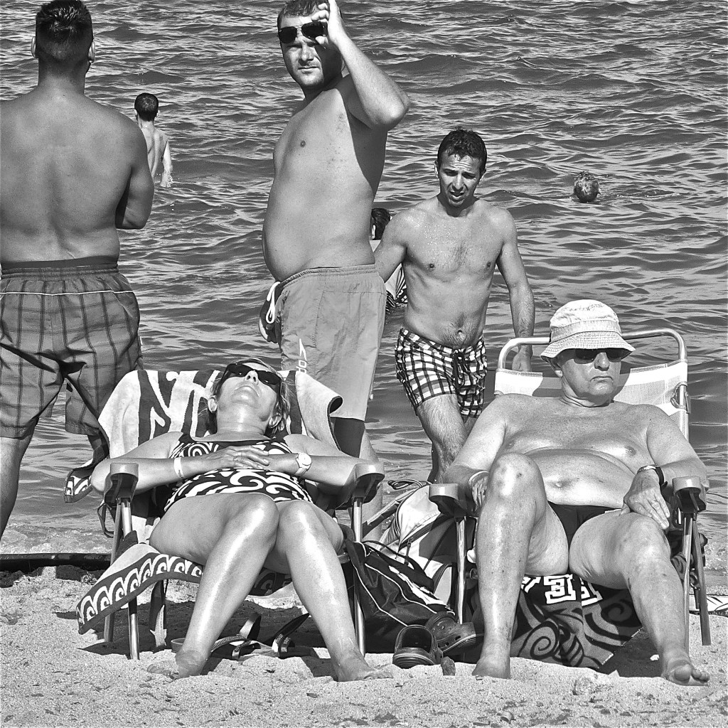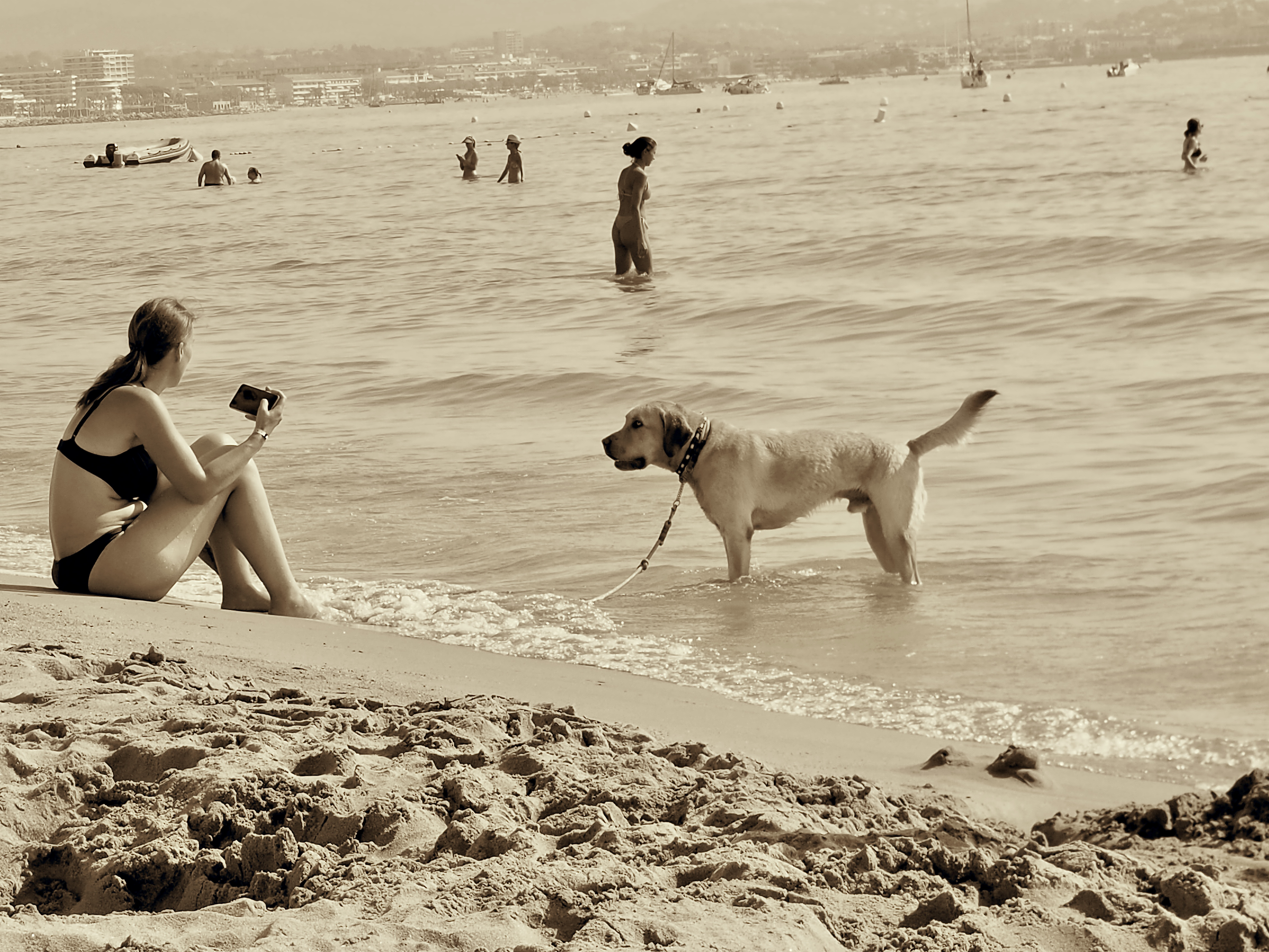 “Life’s a beach and then you fry” or, “To beach or not to beach?” Here are a few clichés from the the beach. We are between St Raphael and Cannes on the French Riviera. All humanity is here, si I guess life is a beach.