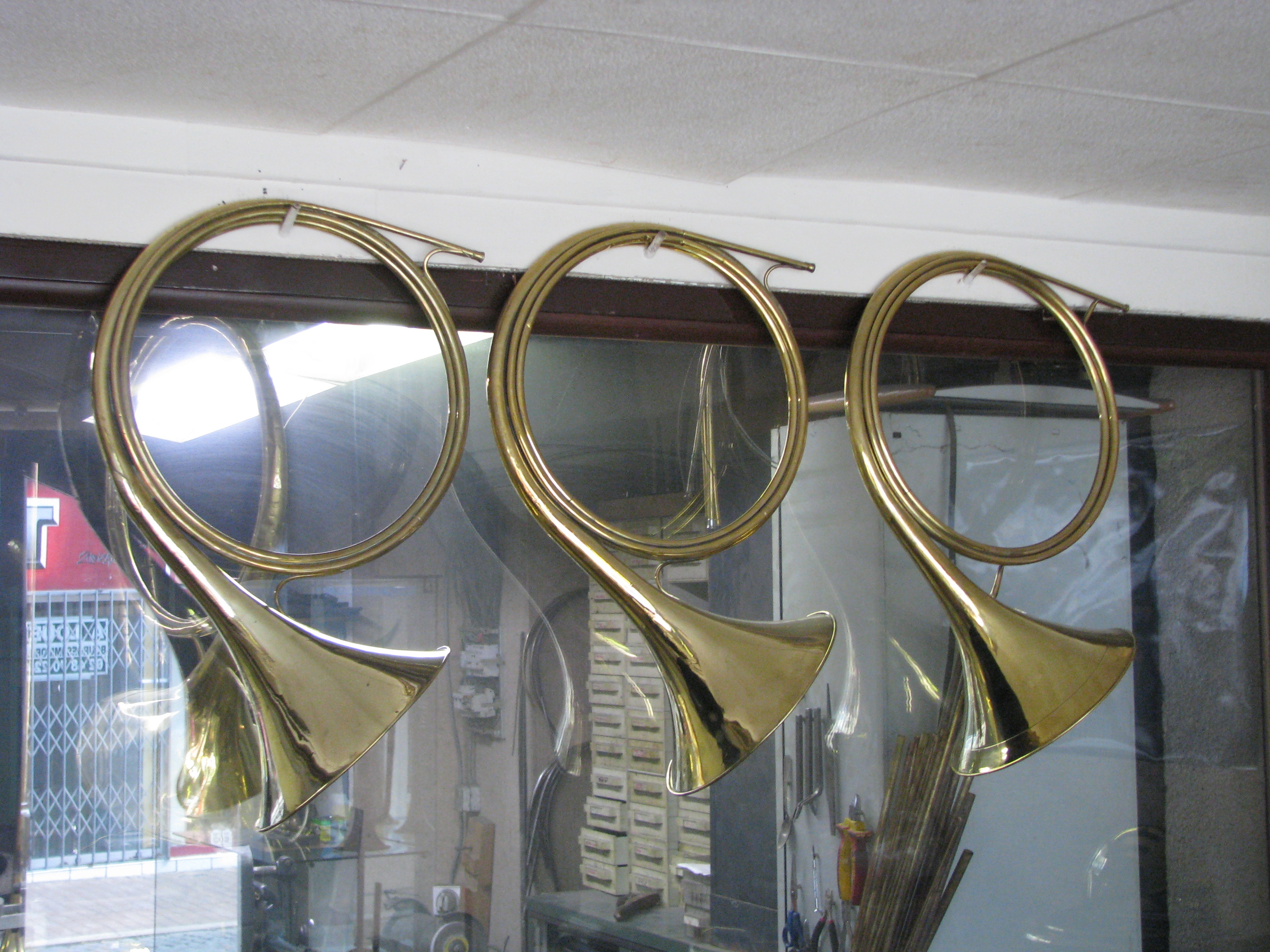 Be it real hunting or mere « pest control », horns still have a vital role to play. Apart from hunting, there is a demand for « ceremonial » horns, favoured at society weddings. When local dignitaries or aristocrats get married, it is traditional, and very posh to have a group of horn blowers decked out in full hunting regalia to play at the wedding. Nowadays though, Monsieur Picard’s main trade comes from repairing and restoring other brass instruments, everything from trumpets and saxophones through to tubas.